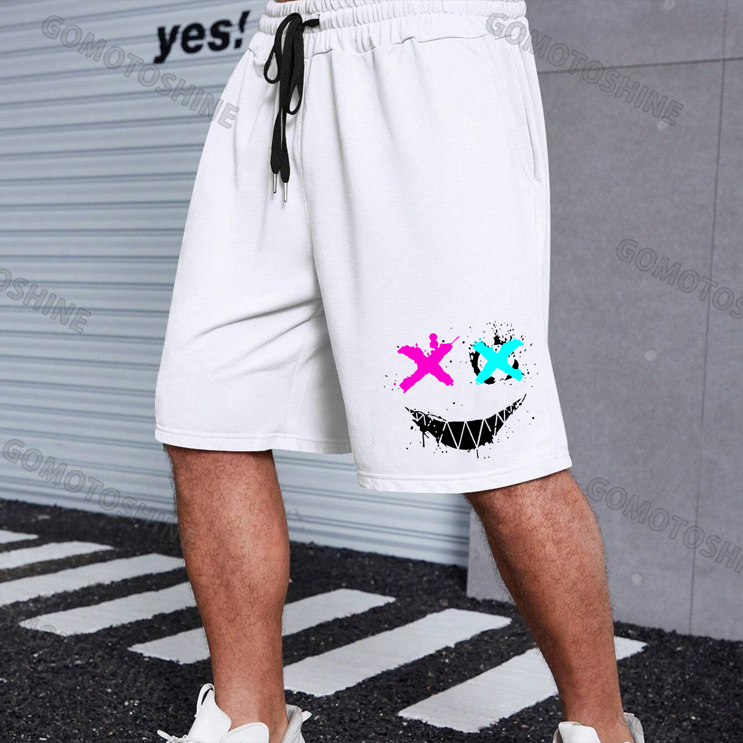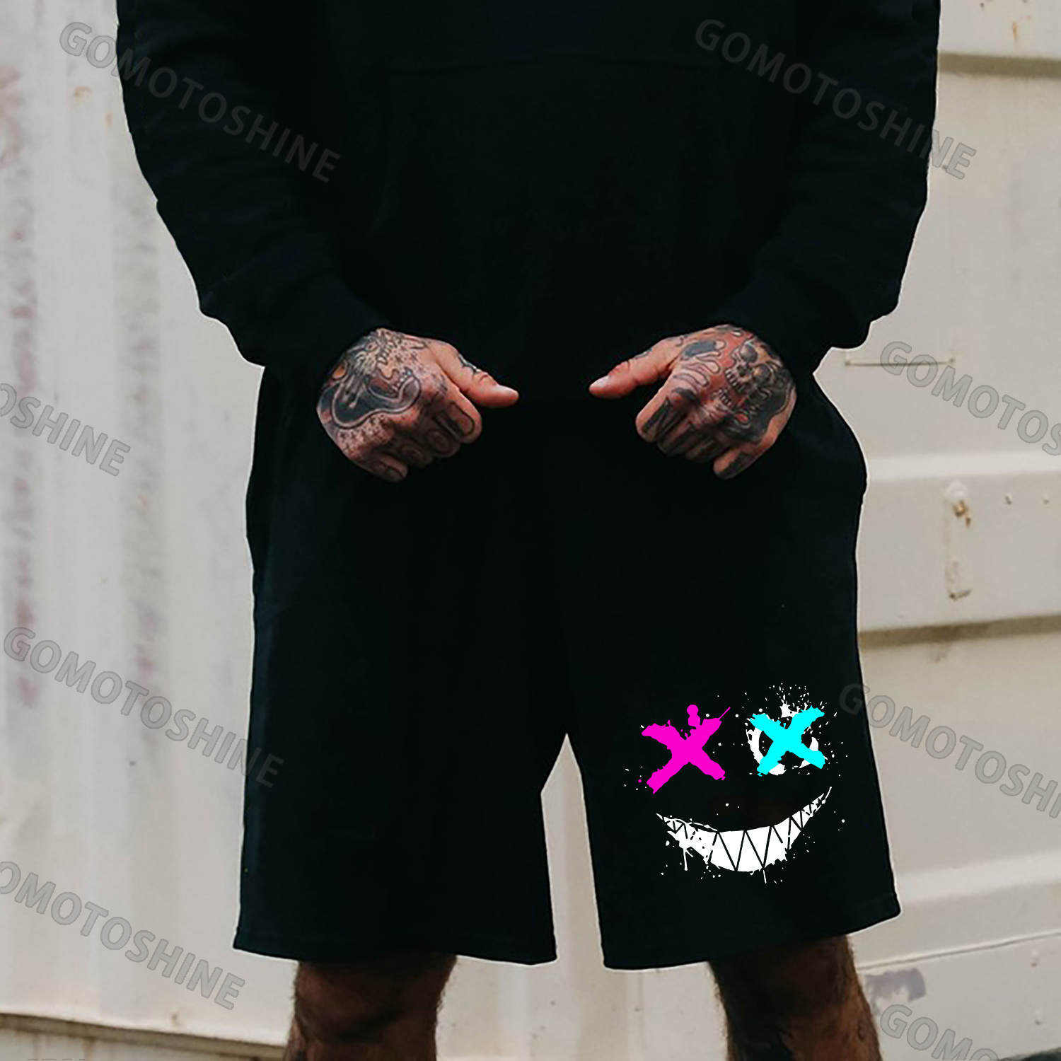 DECEPTION Evil Smile Emoji Bear Graffiti Print Men's Shorts