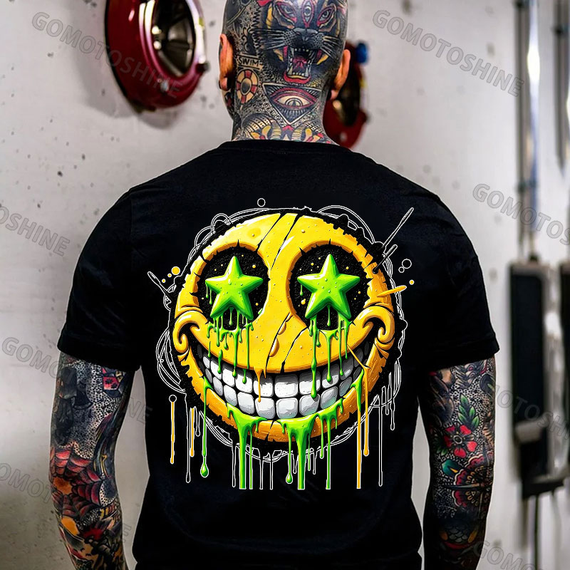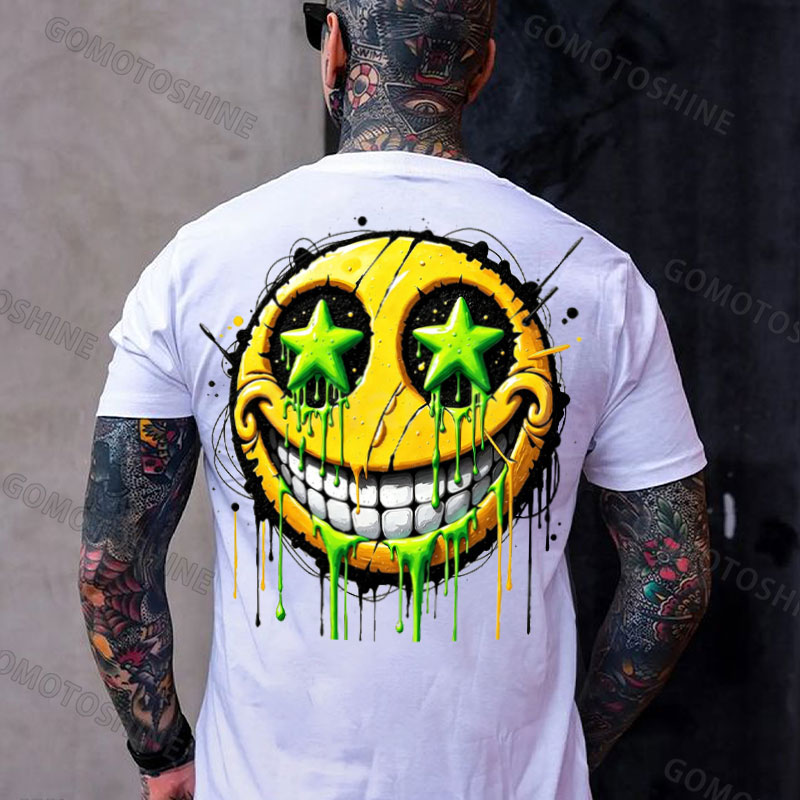 Evil Smile Emoji Graffiti Print Men's T-shirt