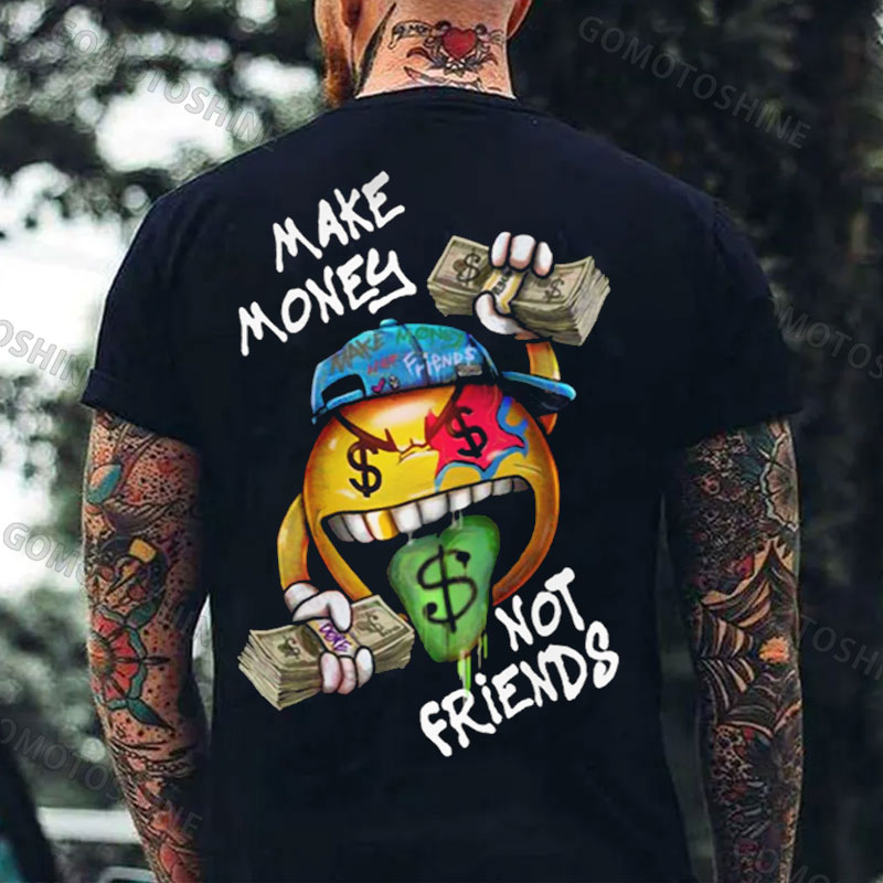 MAKE MONEY NOT FRIENDS Greedy Emoji Print Men's T-shirt