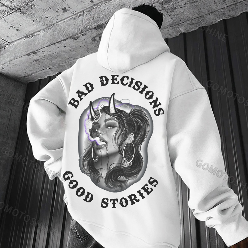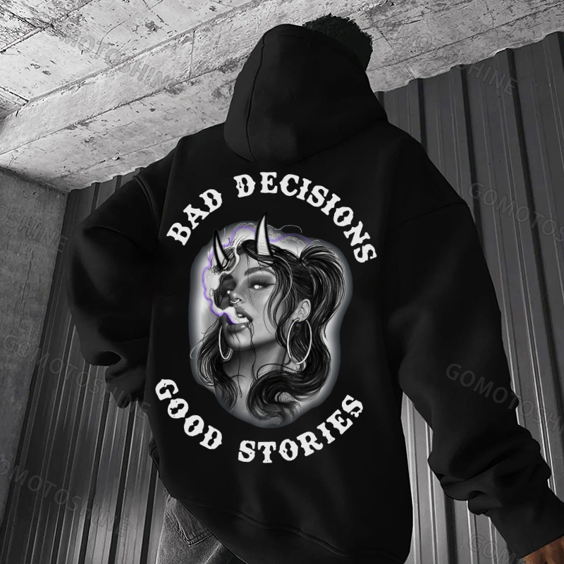 BAD DECISIONS GOOD STORIES Smoking Devil Girl Print Men's Hoodie