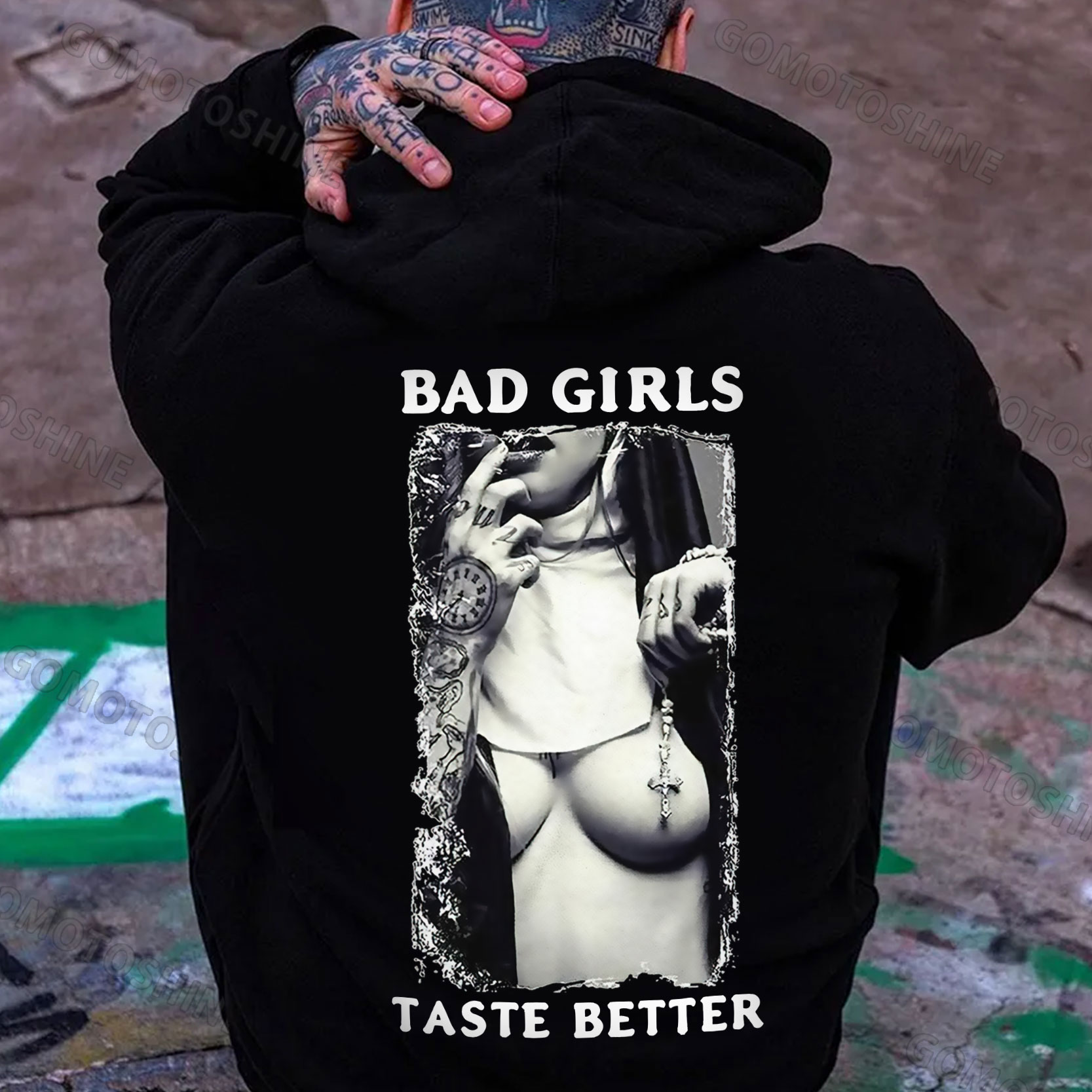 BAD GIRLS TASTE BETTER Sexy Naked Nun Print Men's Hoodie