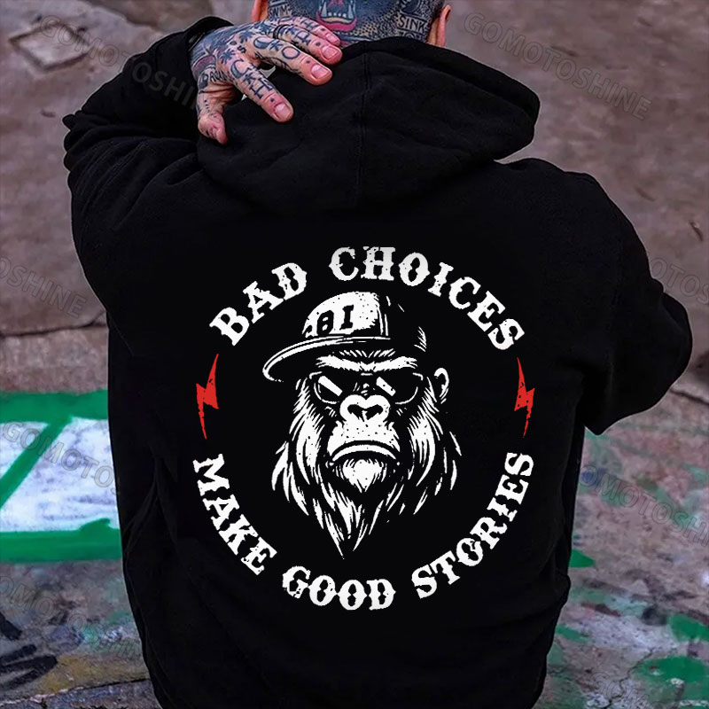 BAD CHOICES MAKE GOOD STORIES Chimpanzee Print Men's Hoodie