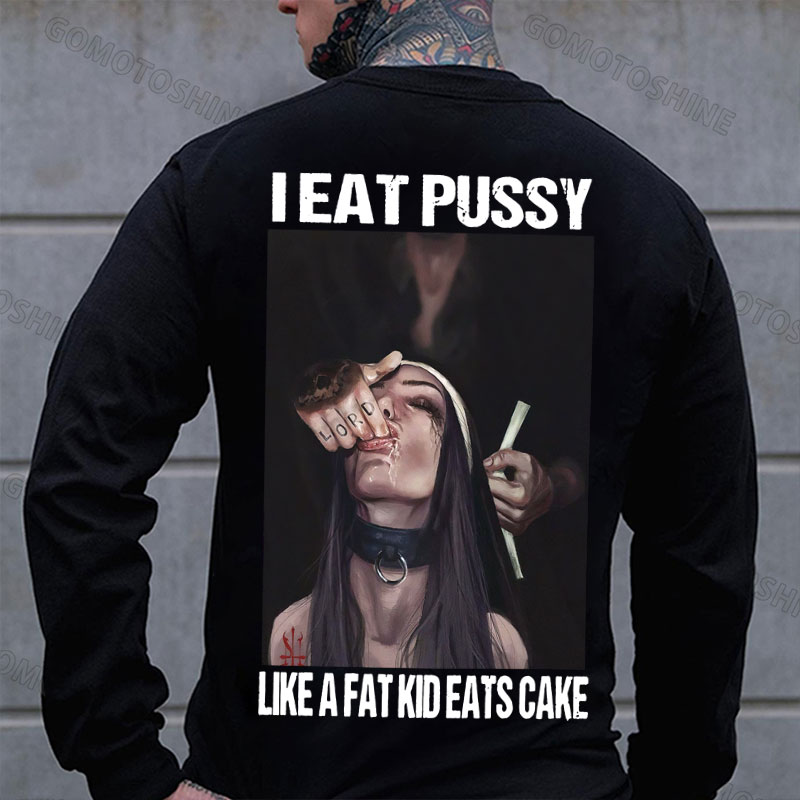 I EAT PUSSY LIKE A FAT KID EATS CAKE Suck Finger Nun Print Men's Sweatshirt
