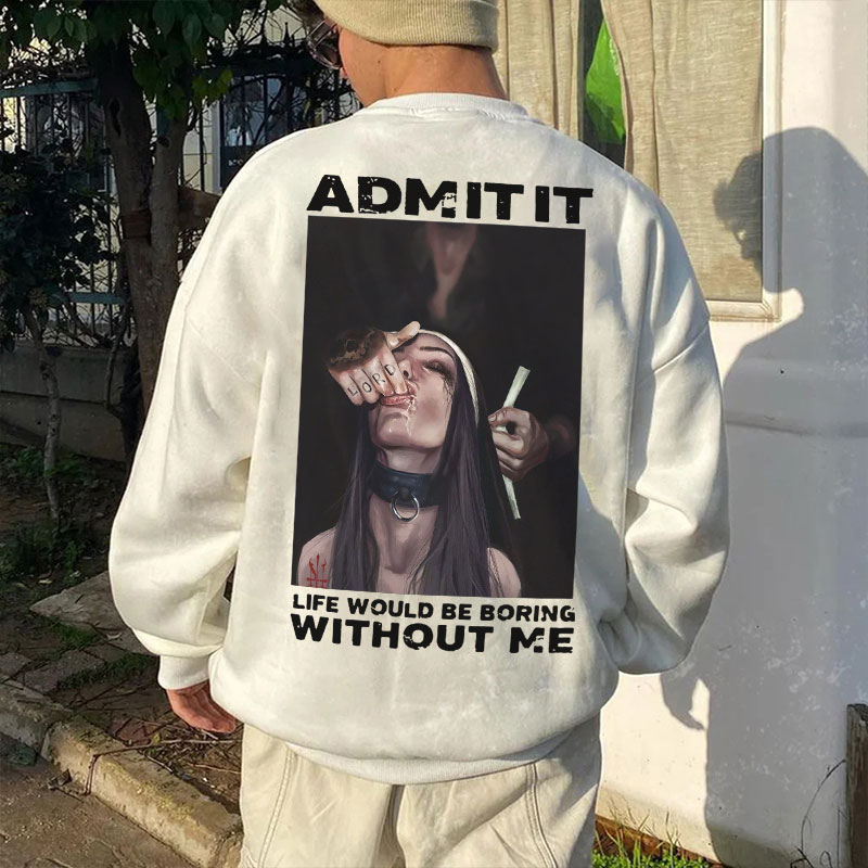 BAD DECISIONS GOOD STORIES Defiant Nun Print Men's Sweatshirt