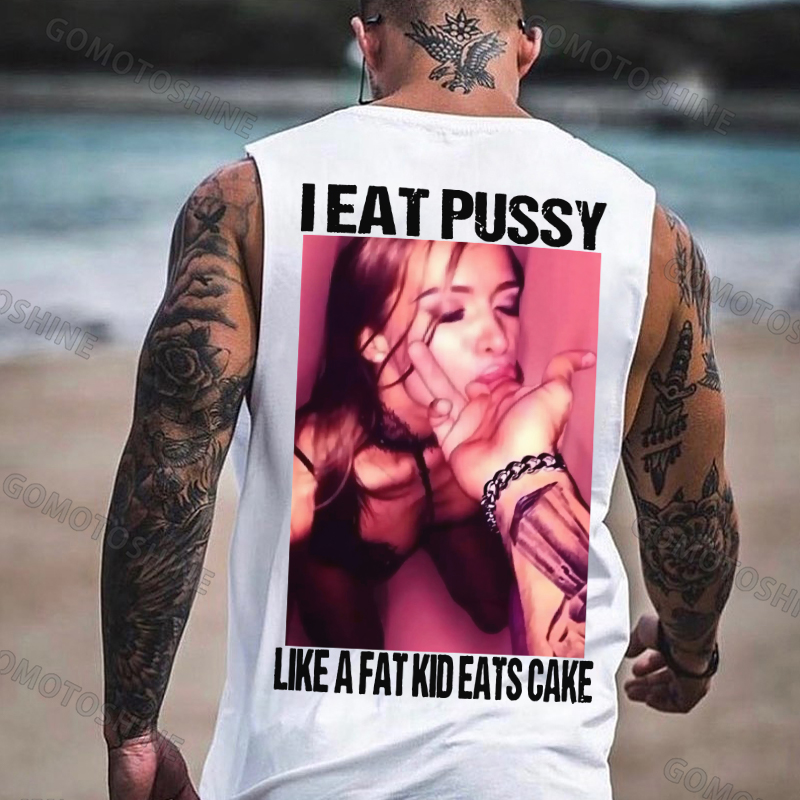 I EAT PUSSY LIKE A FAT KID EATS CAKE Suck Finger Dirty Girl Print Men's Vest