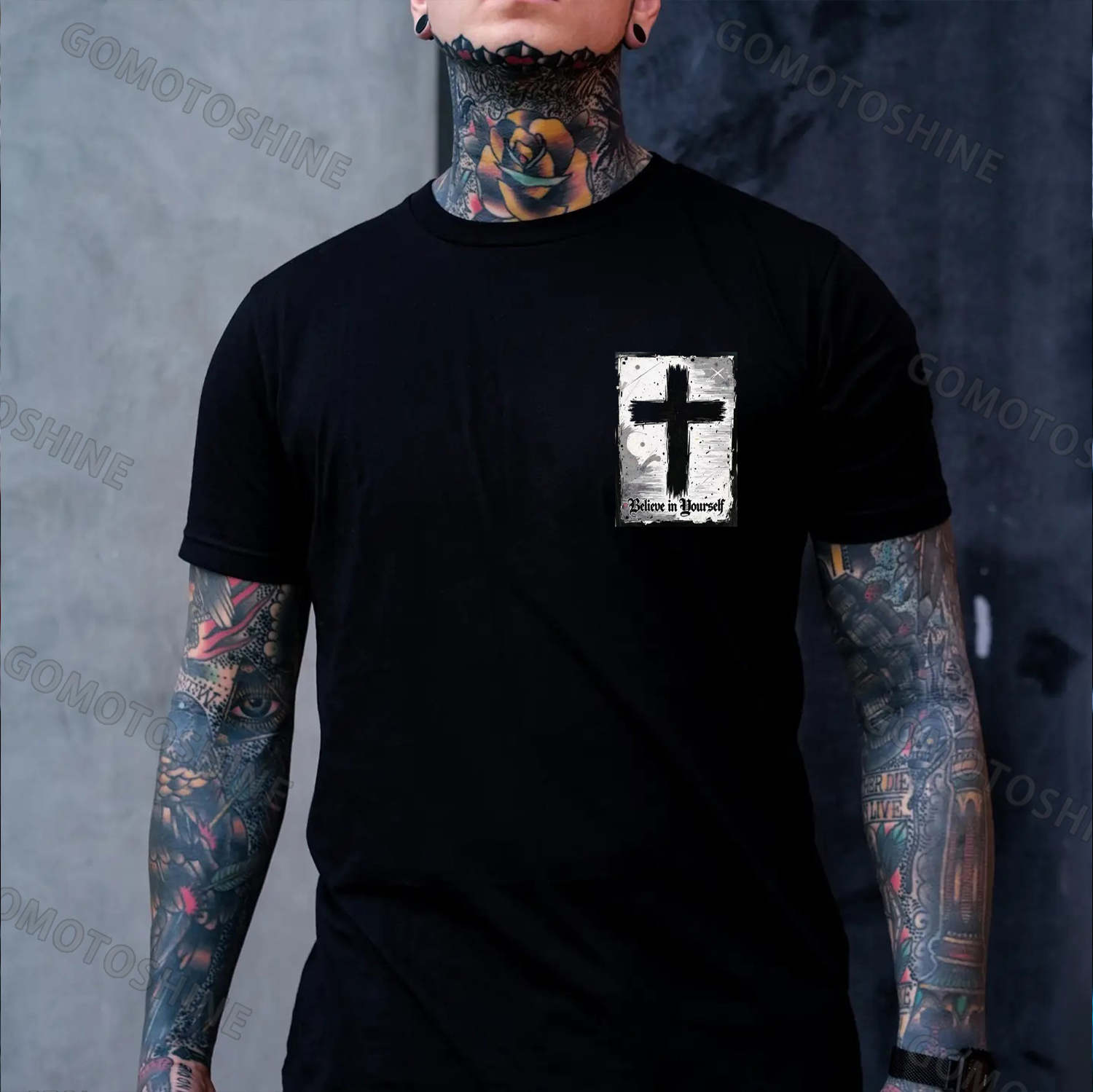 Nun with Crucifix Graphic Dark Style Black Print T-shirt