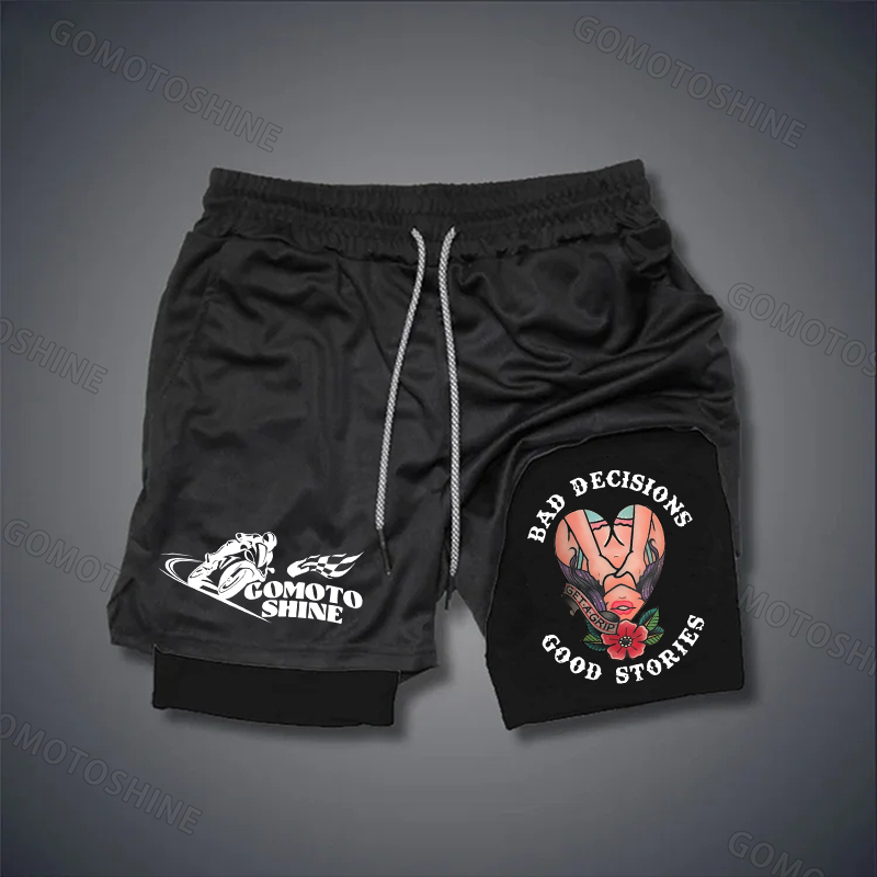 BAD DECISIONS GOOD STORIES GET A GRIP Sexy Lady With Flower Stretch Compression Liner Short