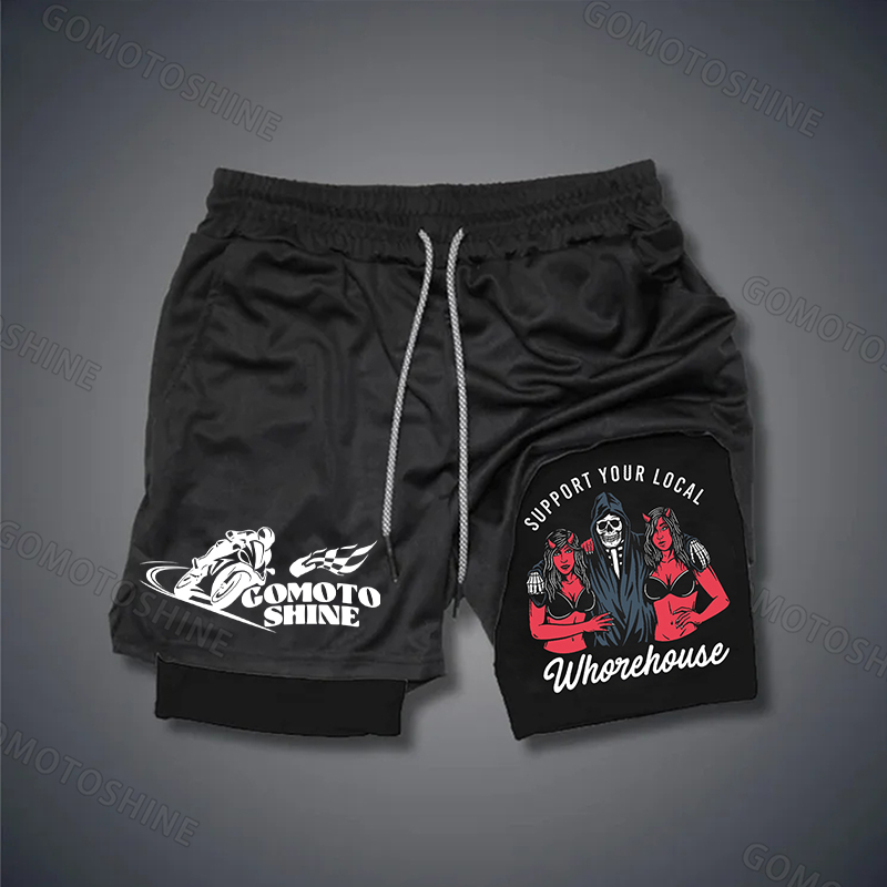 SUPPORT YOUR LOCAL WHOREHOUSE Skull with Sexy Ladies Stretch Compression Liner Short