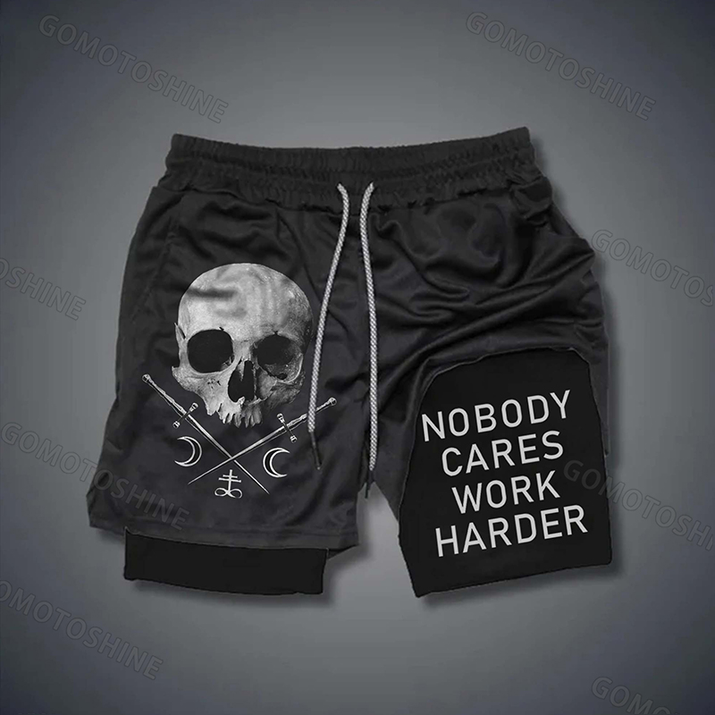 NOBODY CARES WORK HARDER Skull Stretch Compression Liner Short