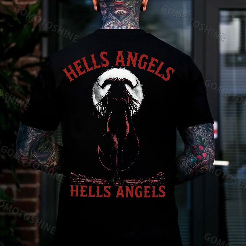 HELLS ANGELS Moon Devil Witch Print Men's T-shirt