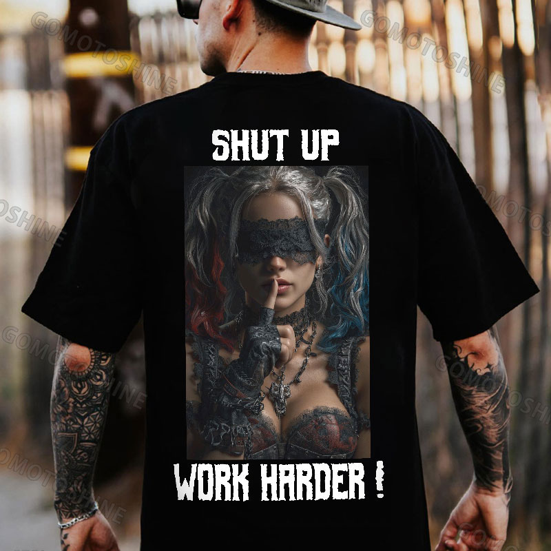 SHUT UP WORK HARDER Blindfolded Joker Girl Print Men's T-shirt