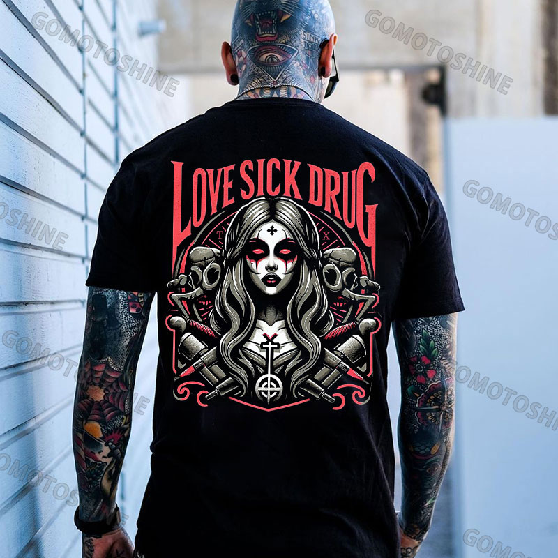 LOVE SICK DRUG Evil Mechanical Nun Print Men's T-shirt