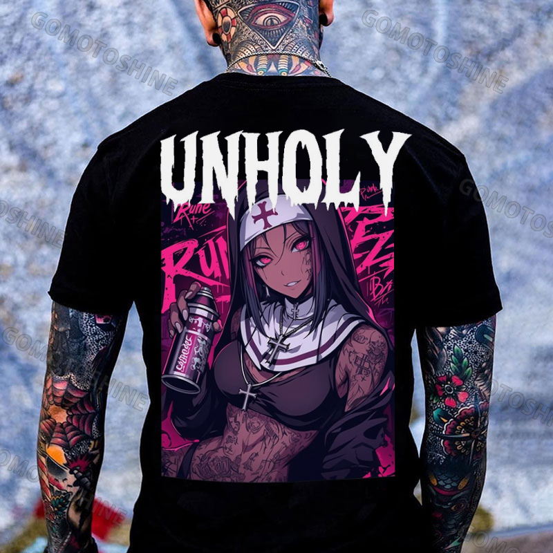 UNHOLY Street Tattooed Young Nun Print Men's T-Shirt