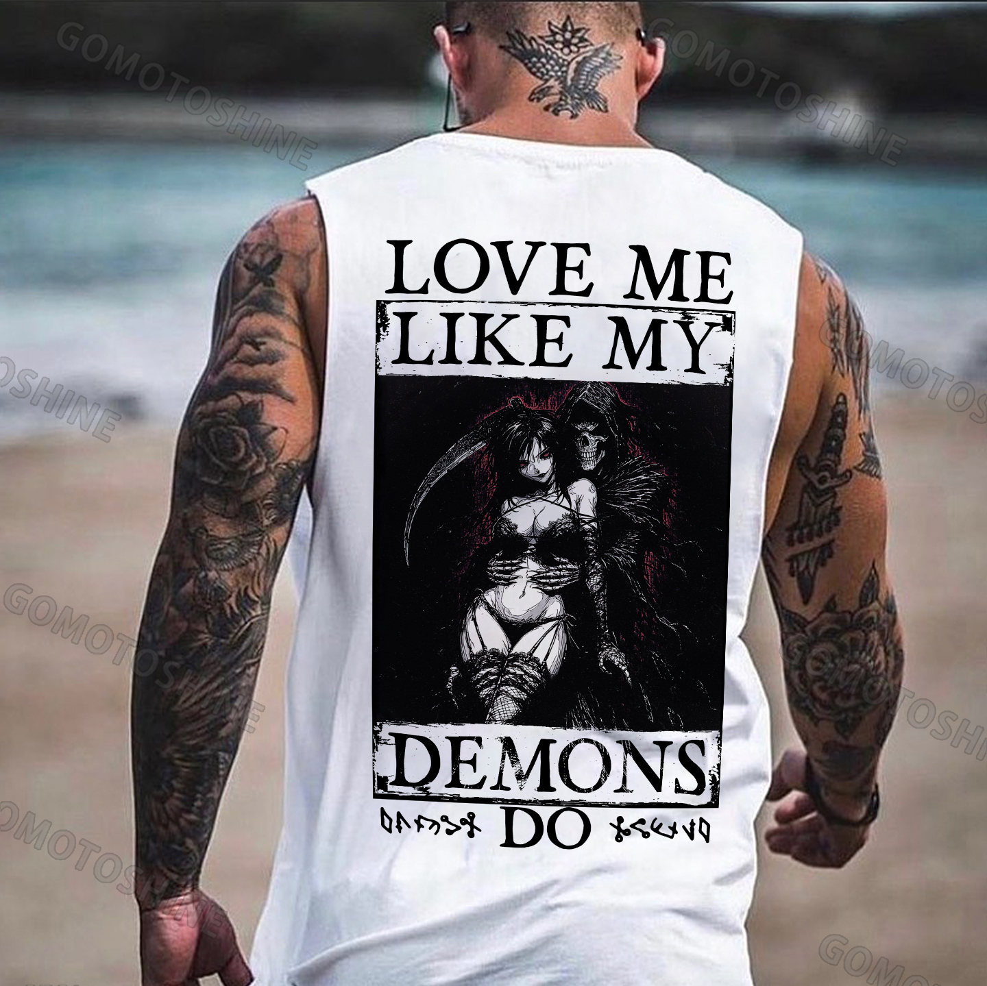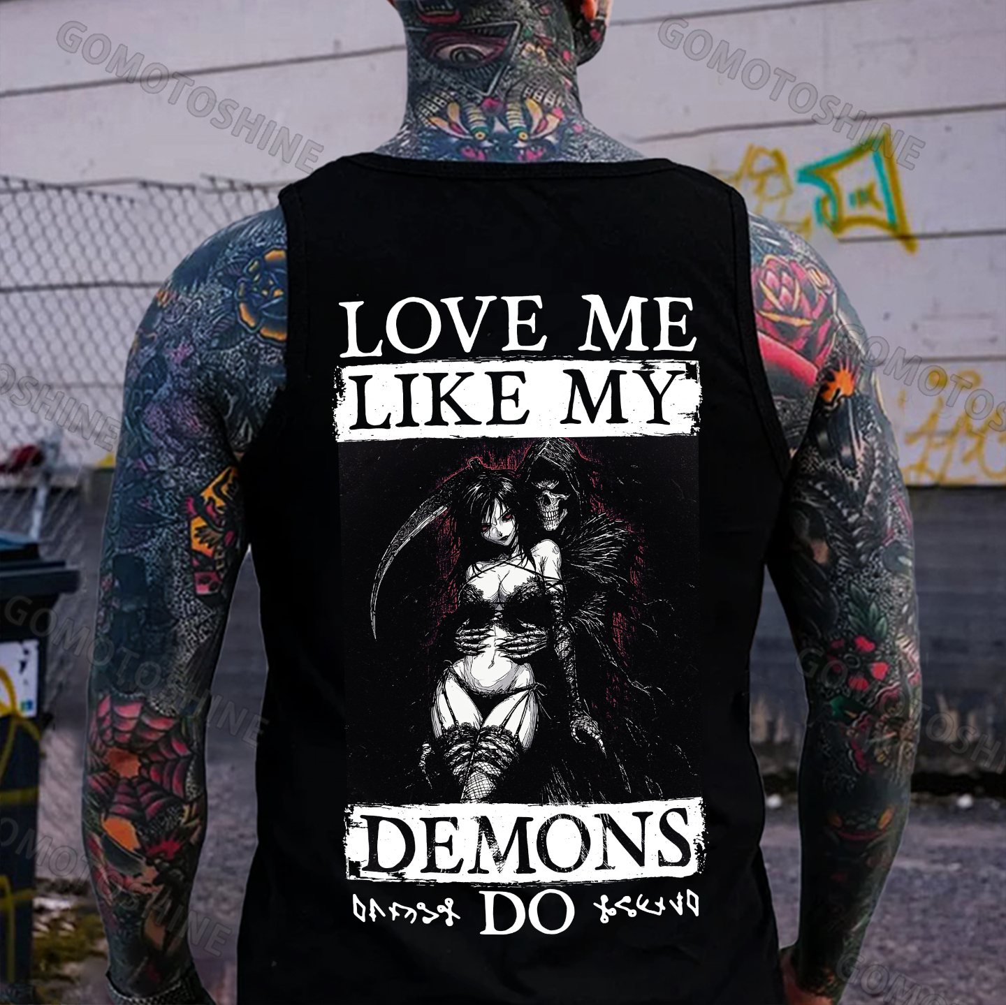 LOVE ME LIKE MY DEMONS DO Skeleton Reaper Evil Girl Print Men's Vest