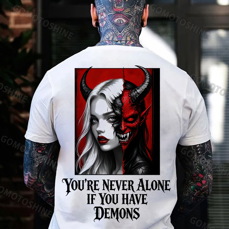 YOU'RE NEVER ALONE IF YOU HAVE DEMONS Devil Girl Half-human Half-demon Print Men's T-shirt