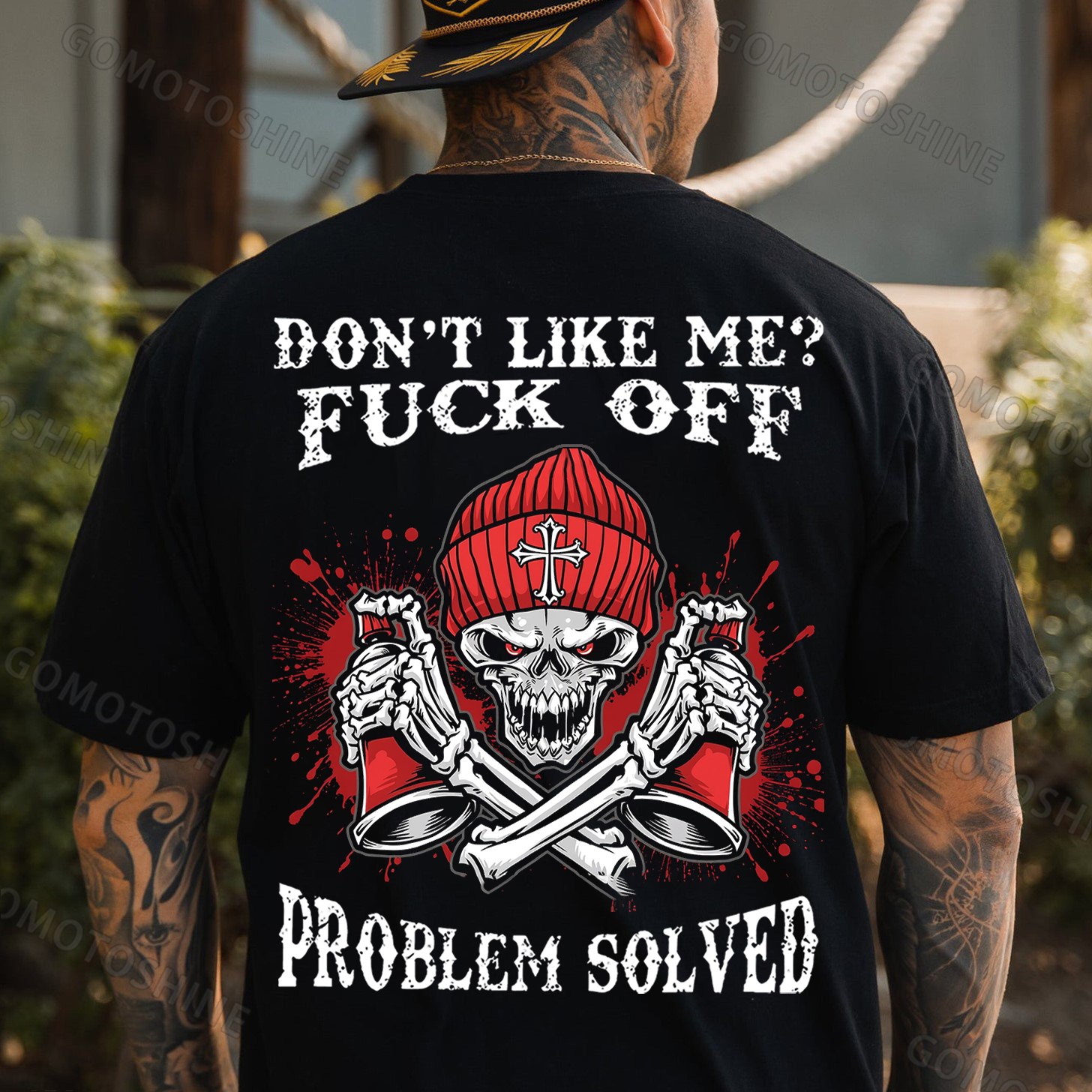 DON'T LIKE M FUCK OFF PROBLEM SOLVED Street Graffiti Skeleton Print Men's T-Shirt