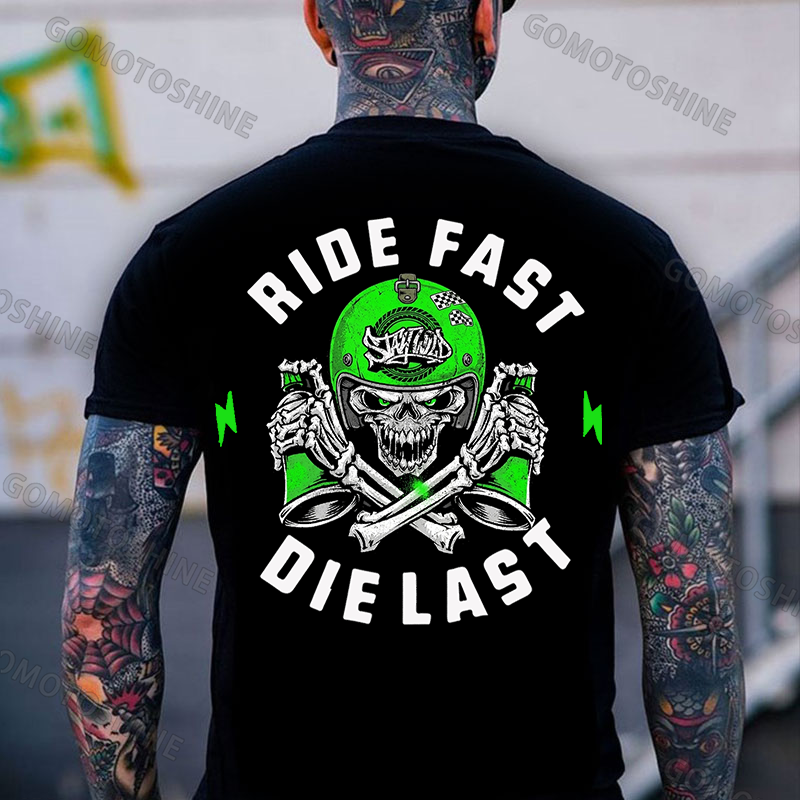 RIDE FAST DIE LAST Street Graffiti Skeleton Print Men's T-Shirt