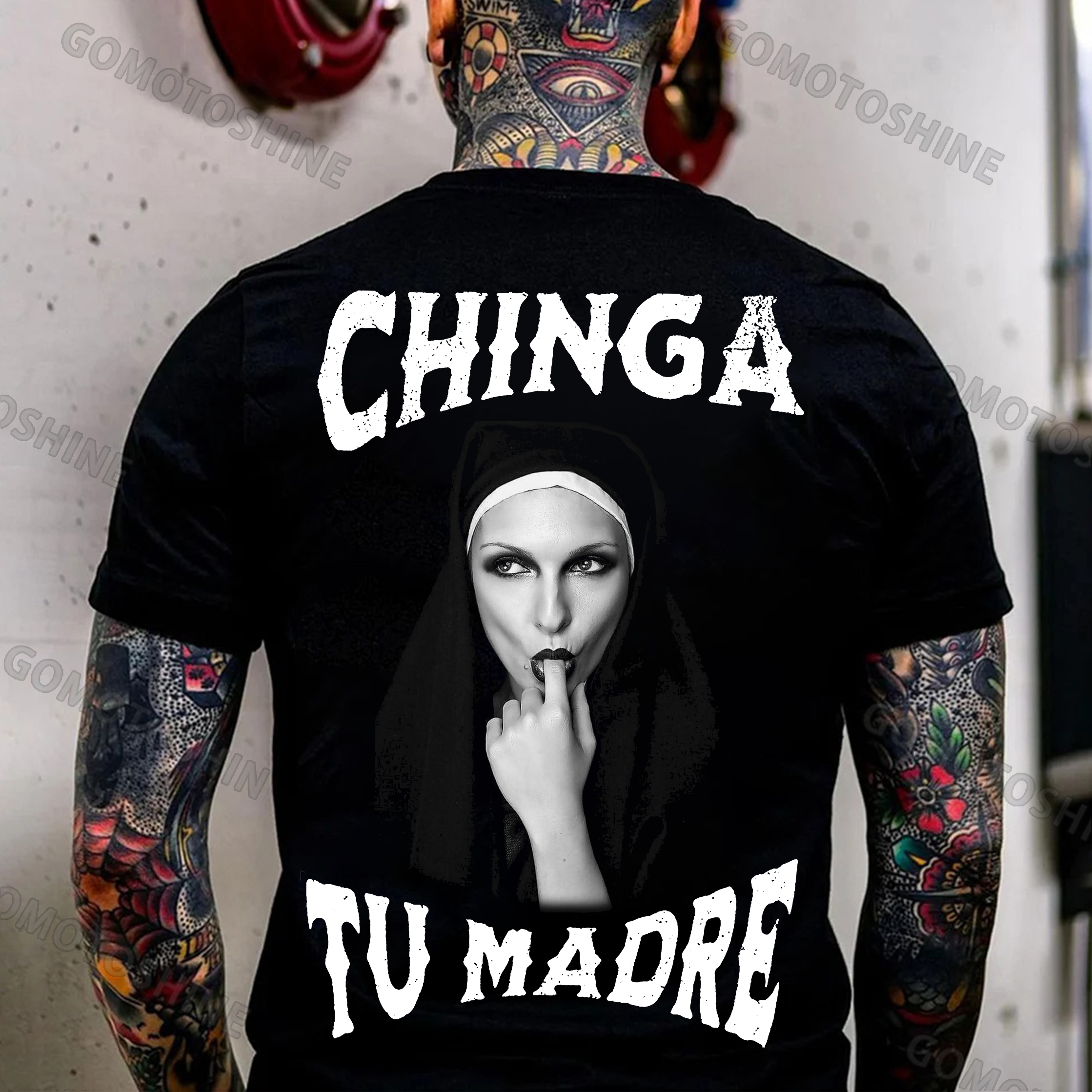 CHINGA TU MADRE Suck Finger Nun Print Men's T-shirt