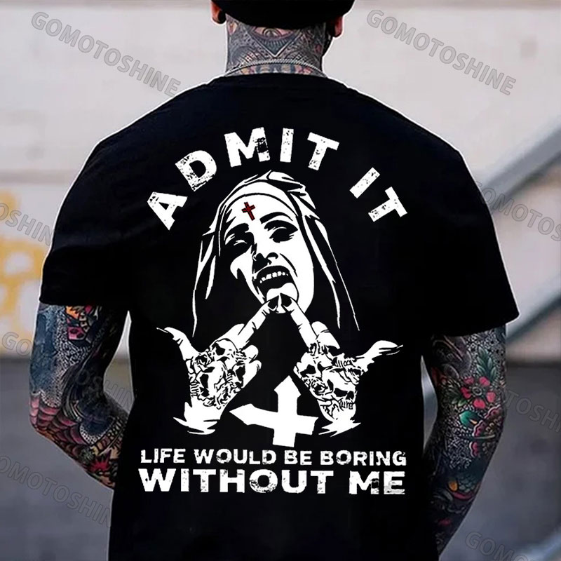 ADMIT IT LIFE WOULD BE BORING WITHOUT ME Defiant Nun Print Men's T-shirt