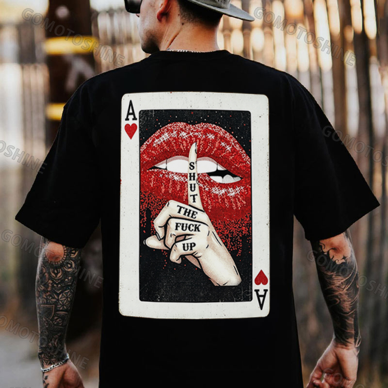 Poker Ace Of Hearts Shut The Fuck Up Sexy Red Lips Print Men's T-shirt