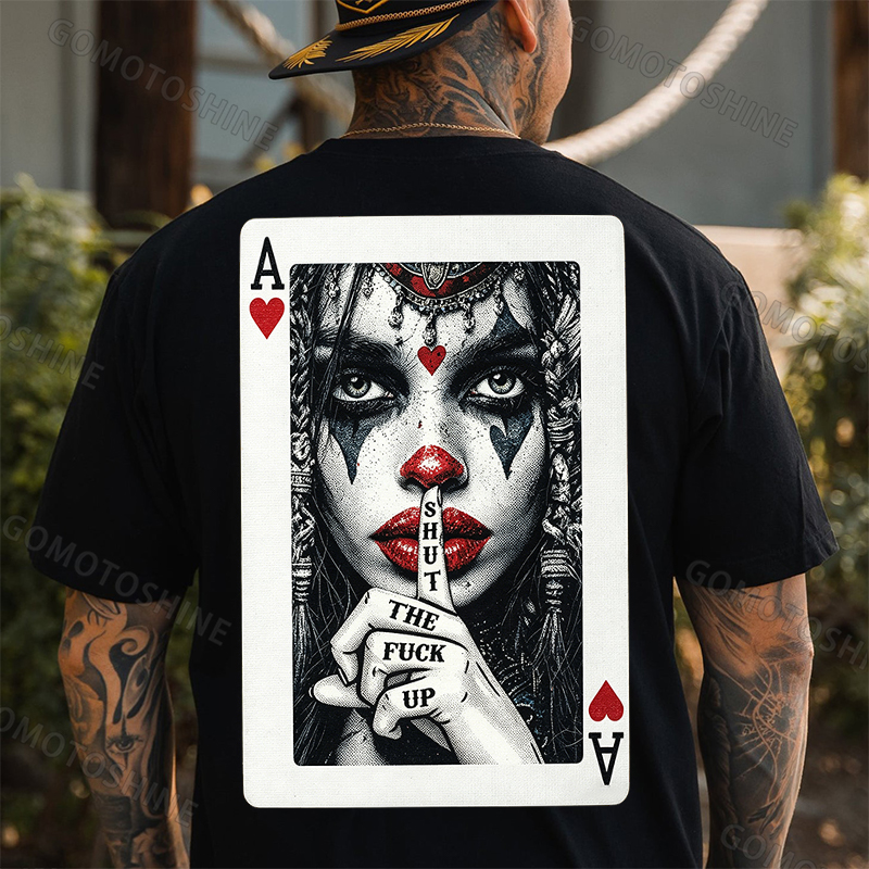 Poker Ace Of Hearts Shut The Fuck Up Joker Girl Print Men's T-shirt