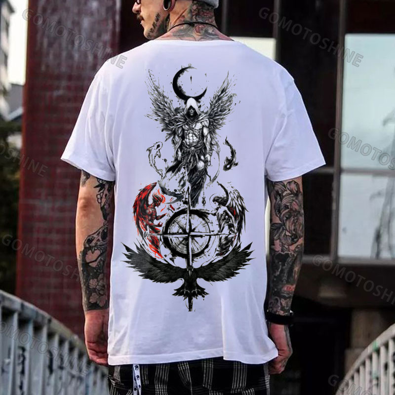 Fallen Angel Devil Compass Crow Dark Style Print Men's T-shirt