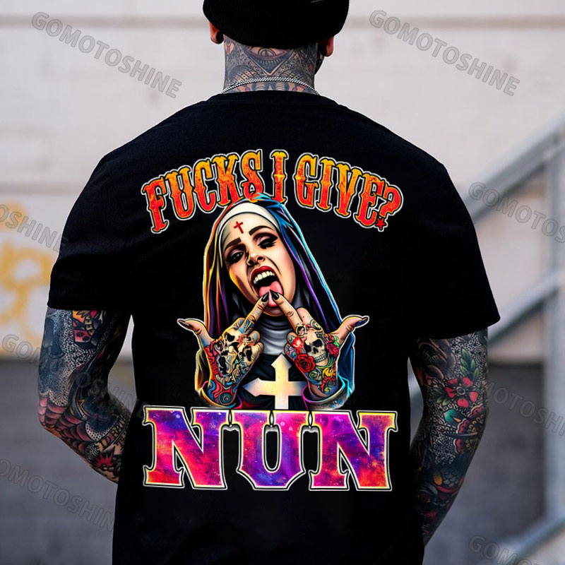 FUCKS I GIVE NUN Tattooed Defiant Nun Print Men's T-shirt