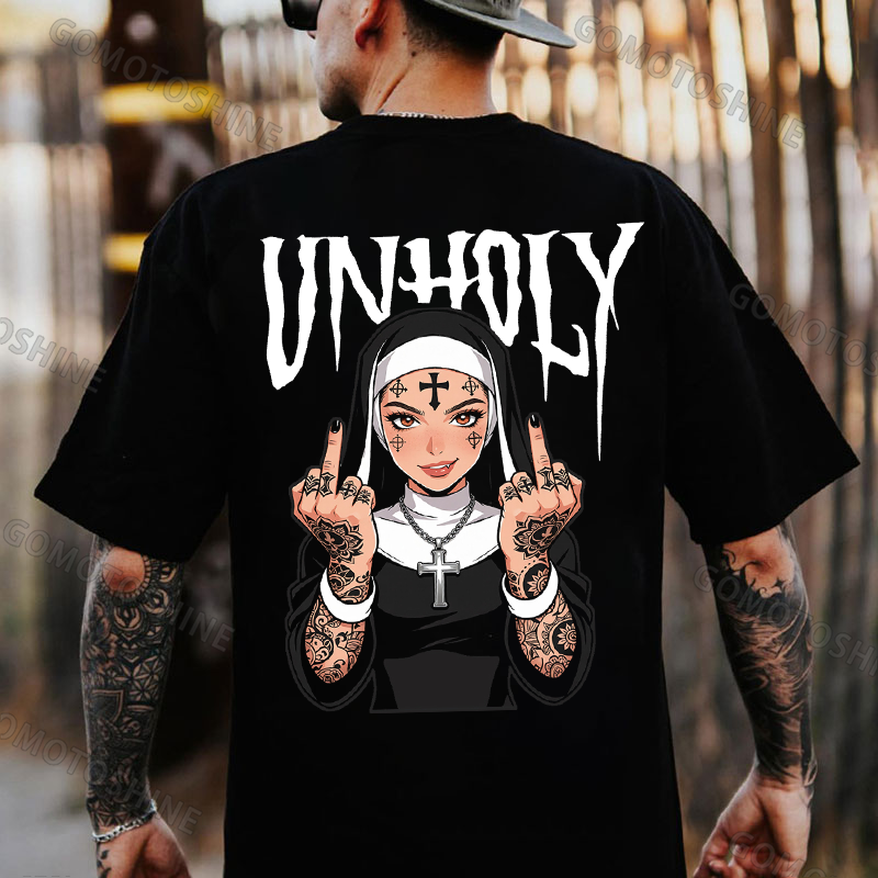 UNHOLY Nun Smoking Dark Style Black Print T-shirt