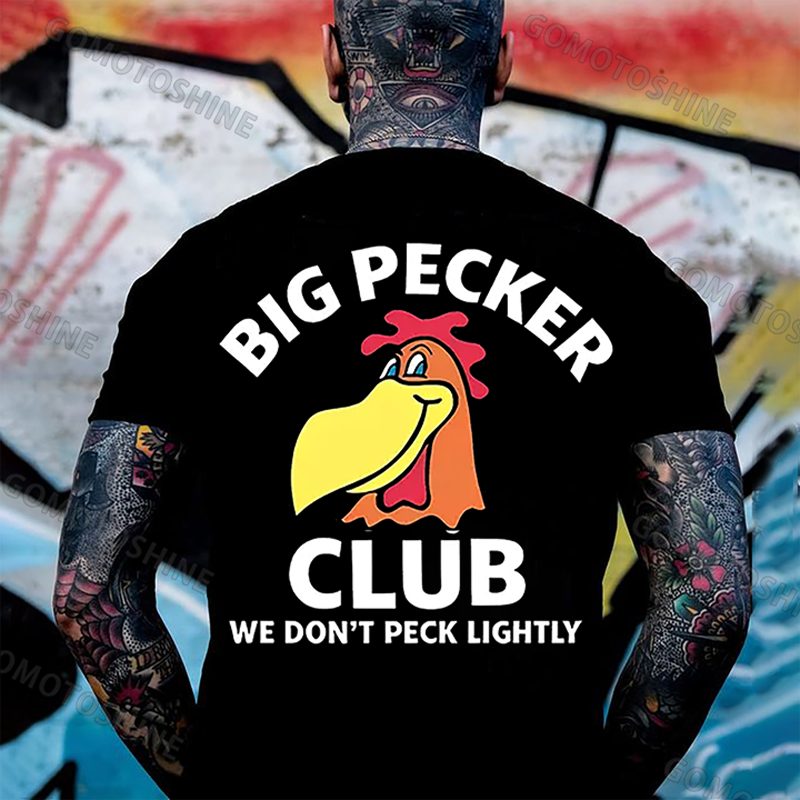 BIG PECKER CLUB WE DON'T PECK LIGHTLY Cartoon Hen Print Men's T-shirt