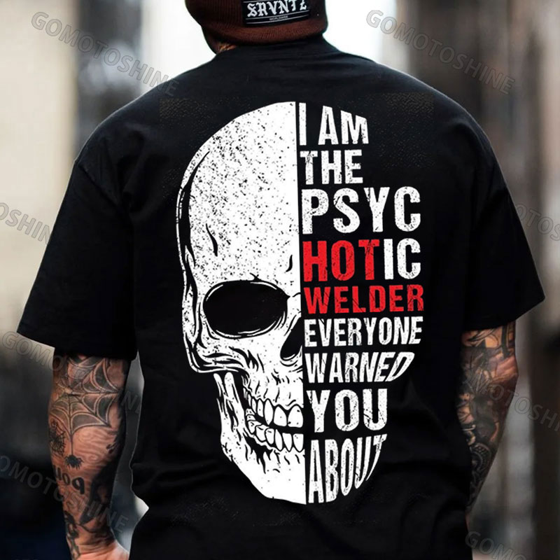 I AM THE PSYCHOTIC WELDER EVERYONE WARNED YOU ABOUT Skull Print Men's T-shirt