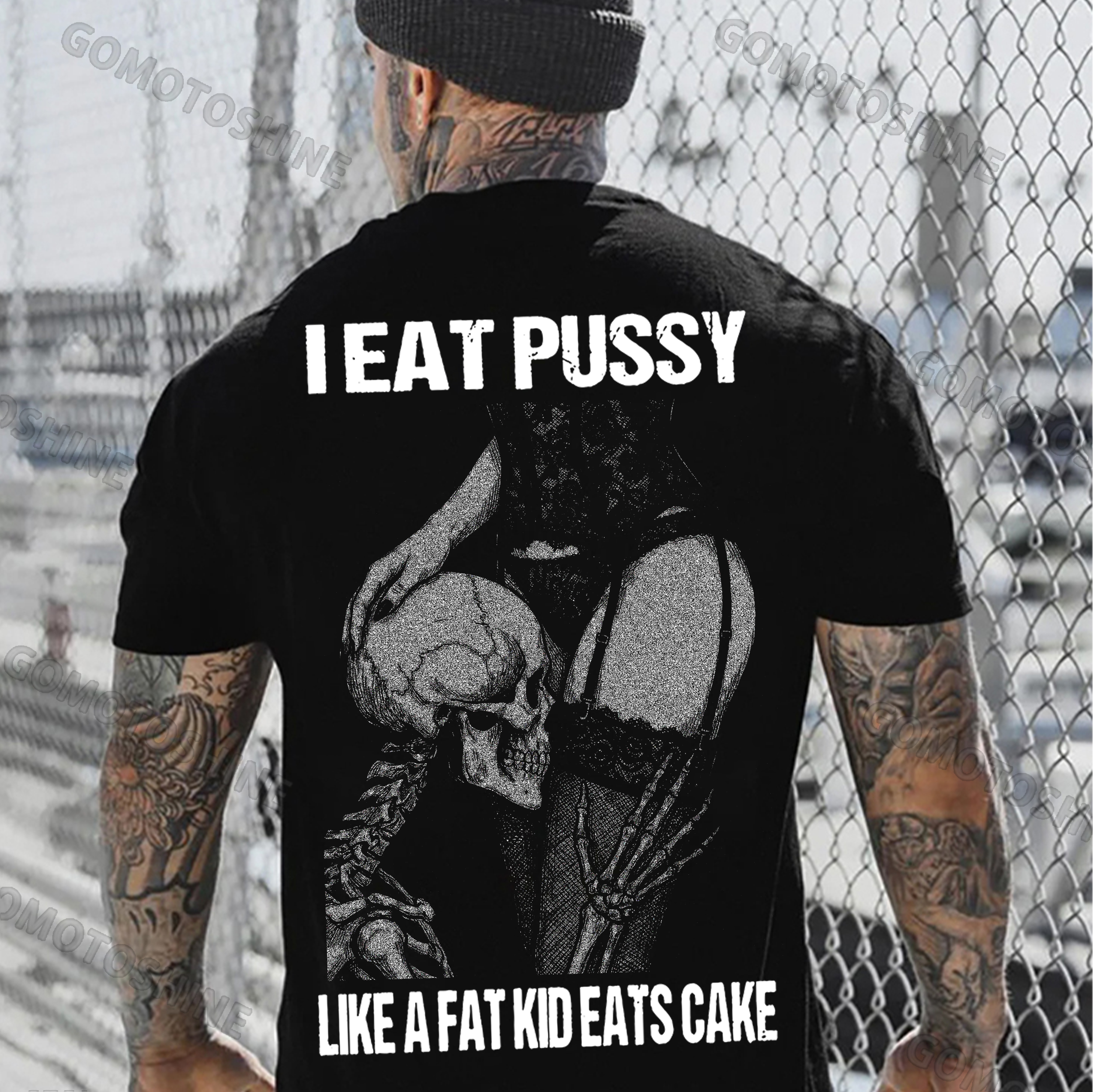 I EAT PUSSY LIKE A FAT KID EATS CAKE Skeleton Sucking Sexy Woman Print Men's T-shirt