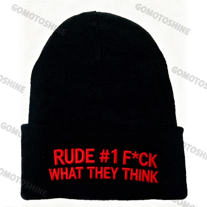 RUDE #1 F*CK WHAT THEY THINK Letters Embroidery Knit Cuffed Beanie