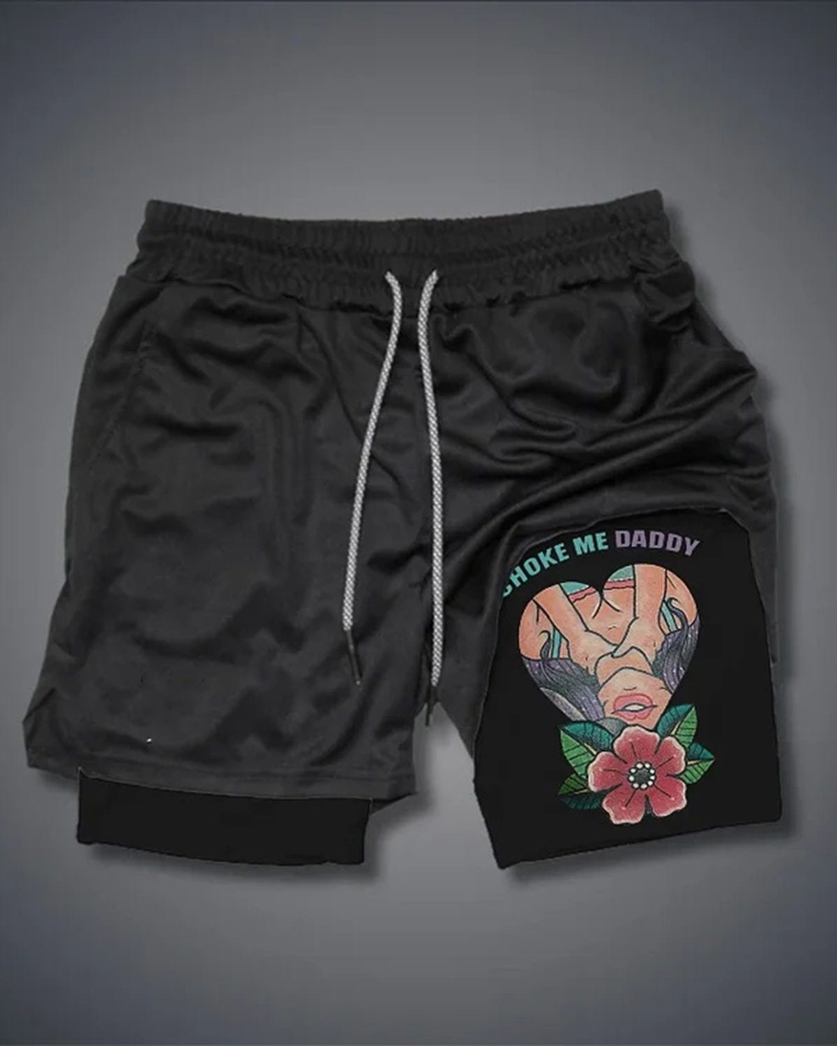 Dirty Man Suck Flower Stretch Compression Liner Short