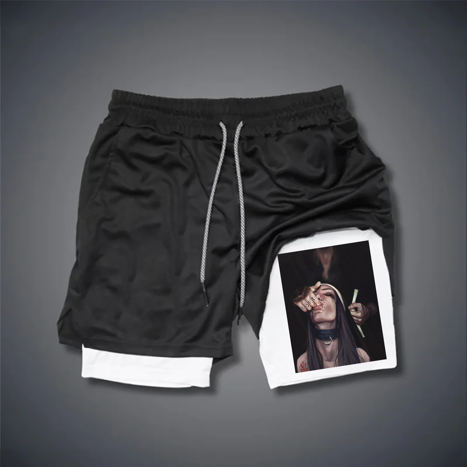 Sexy Tattooed Nun Stretch Compression Liner Short