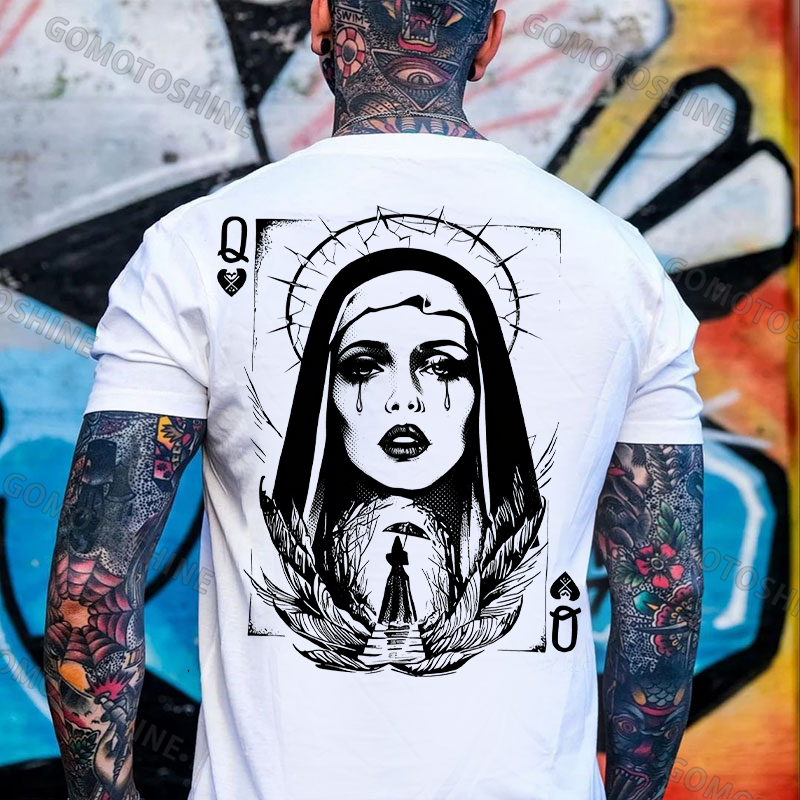 Poker Q Thorn Crying Nun Print Men's T-shirt