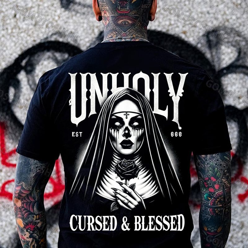UNHOLY CURSED & BLESSED Devil Nun Print Men's T-shirt