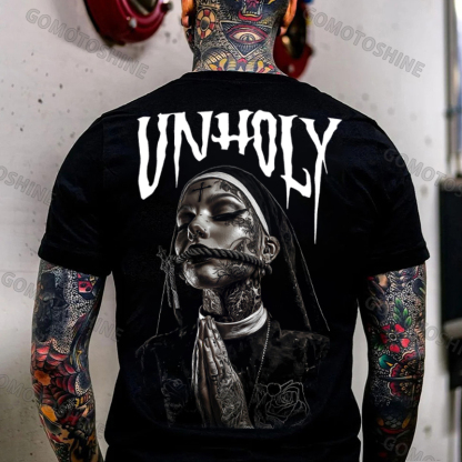 UNHOLY Praying Tied Nun Print Men's T-shirt Image - 1 UNHOLY Praying Tied Nun Print Men's T-shirt Image - 2 UNHOLY Praying Tied Nun Print Men's T-shirt Image - 3 UNHOLY Praying Tied Nun Print Men's T-shirt Image - 4 UNHOLY Praying Tied Nun Print Men's T-shirt Image - 5 UNHOLY Praying Tied Nun Print Men's T-shirt Image - 6