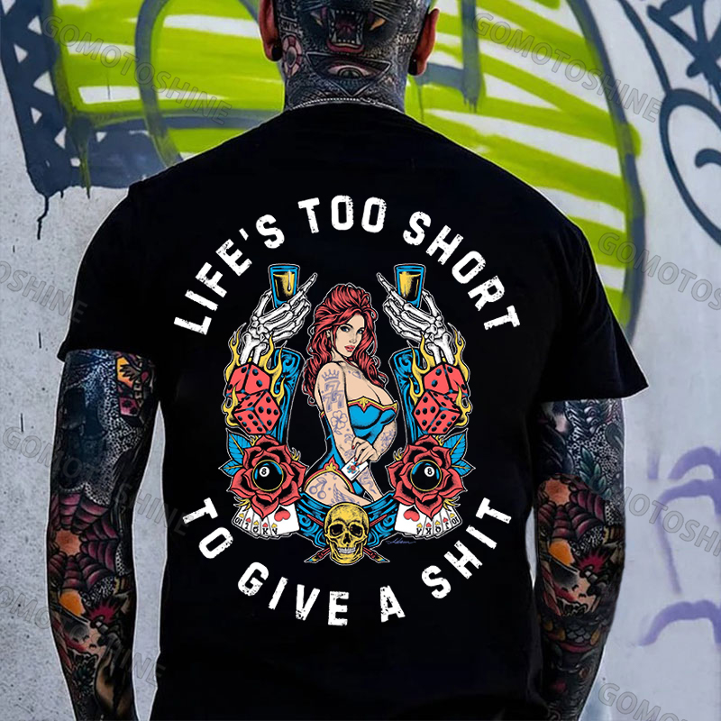 LIFE'S TOO SHORT TO GIVE A SHIT Tattooed Casino Lady Print Men's T-shirt