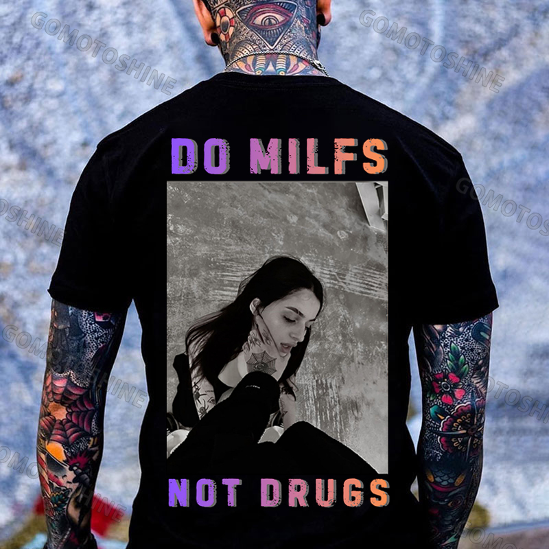 DO MILFS NOT DRUGS Grab Tattooed Girl Print Men's T-shirt