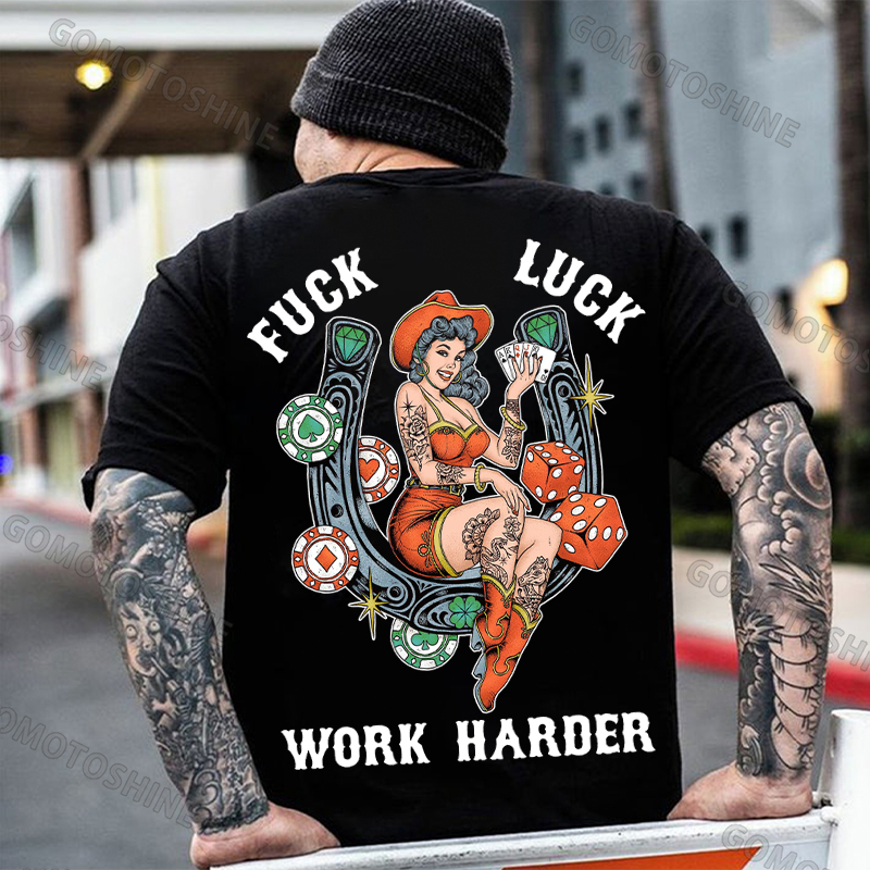 FUCK LUCK WORK HARDER Horseshoe Casino Lady Print Men's T-shirt