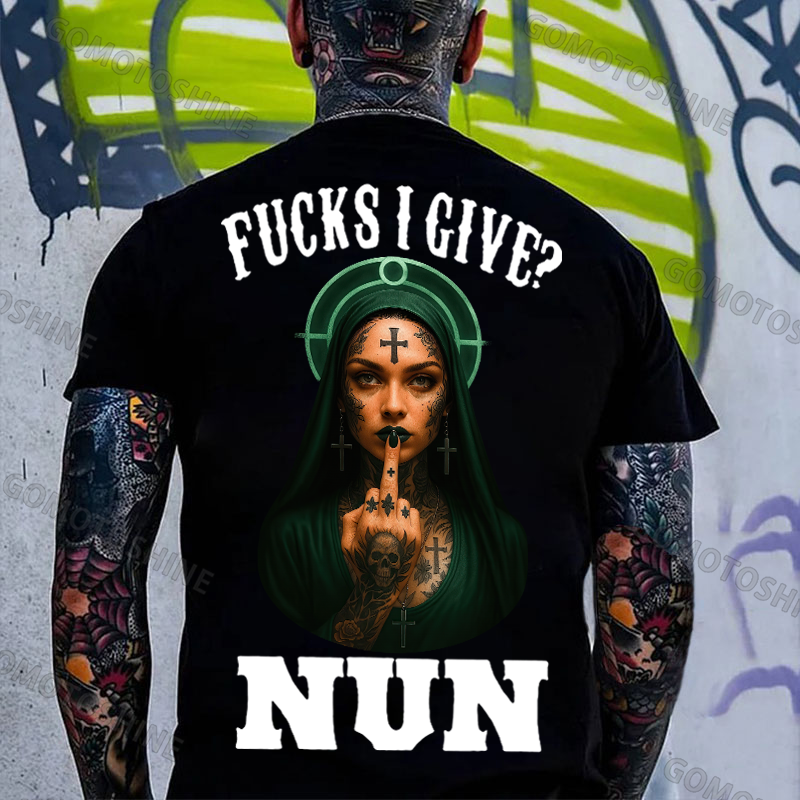 FUCKS I GIVE NUN Defiant Tattooed Nun Print Men's T-Shirt
