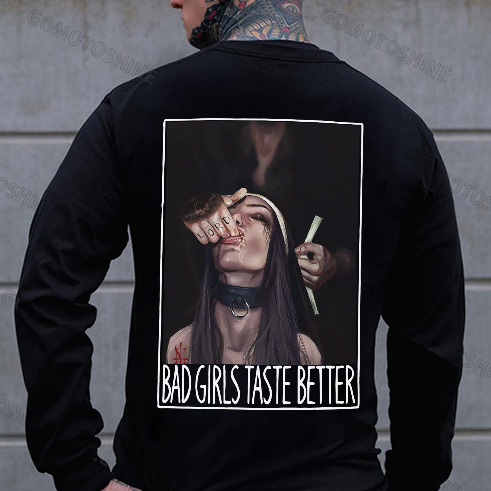 BAD GIRLS TASTE BETTER Suck Finger Nun Print Men's Sweatshirt